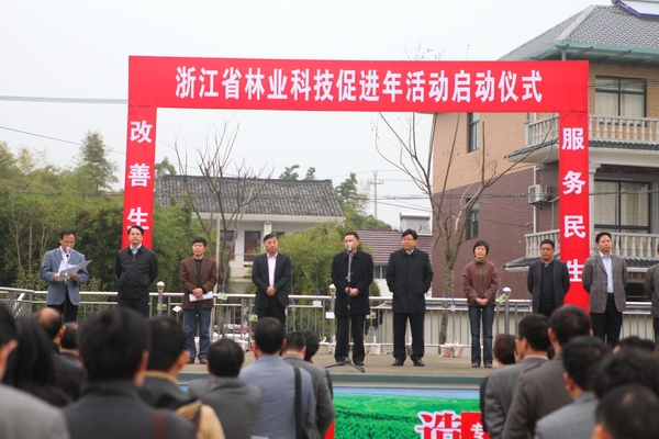 浙農林大新聞網訊 3月20日,全省林業科技促進年活動啟動儀式在德清縣舉行。省林業廳、省科技廳、中國林科院亞林所和省林業廳機關有關處室、直屬有關單位領導和專家,湖州市及所轄縣(市、區)林業局局長、推廣站長,林業科技進村入企專家服務隊代表,湖州市、德清縣有關領導及各鄉鎮(街道)分管領導、林技員,林業大戶和企業代表等100余人,我校副校長金佩華,以及竹領域部分專家、社會合作處有關人員參加了啟動儀式。