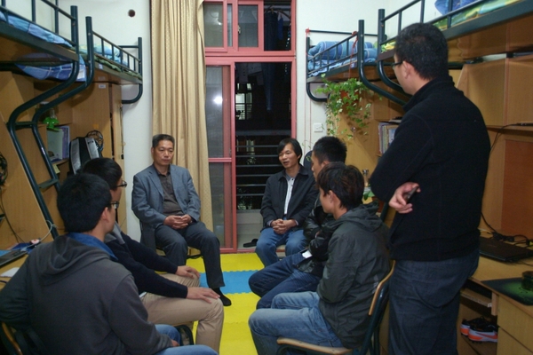 陳永富與所聯系寢室的4位同學進行了深入親切交談,詳細了解他們日常的學習、生活情況,對他們提出的困惑進行耐心細致地解答。同時他結合自身多年的學習生活體會,深入淺出地闡述了學生文明寢室建設的重要性,鼓勵大家要從各自“寢室”做起,做一個“有思考的人”、“有目標的人”、“有行動的人”、“有團結意識的人”,在大學里“學會做事,學會做人,學會做學問”,積極營造整潔高雅、溫馨和諧、健康文明和勤奮向上的寢室環境,不斷充實自己的大學四年的學習生活。最后,陳永富主動告知辦公地點和聯系方式,并真誠邀請同學們平時能主動與他聯系交流。