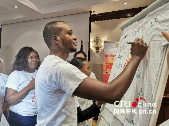 當地時間23日,肯尼亞內羅畢大學孔子學院和肯尼亞留華人員俱樂部在首都內羅畢聯合舉辦了“風雨同心 共同戰‘疫’”聲援中國抗擊新冠肺炎疫情的活動。來自肯尼亞各地的留華學者代表以及即將赴華留學的肯尼亞學生為中國抗擊新冠肺炎疫情加油鼓勁。我校國際生格瑞絲作為學校代表參加活動,在紀念T恤衫上簽名。該事跡受到新華社客戶端、國際在線、人民日報海外網、光明網、環球網、新浪網主流媒體關注報道。